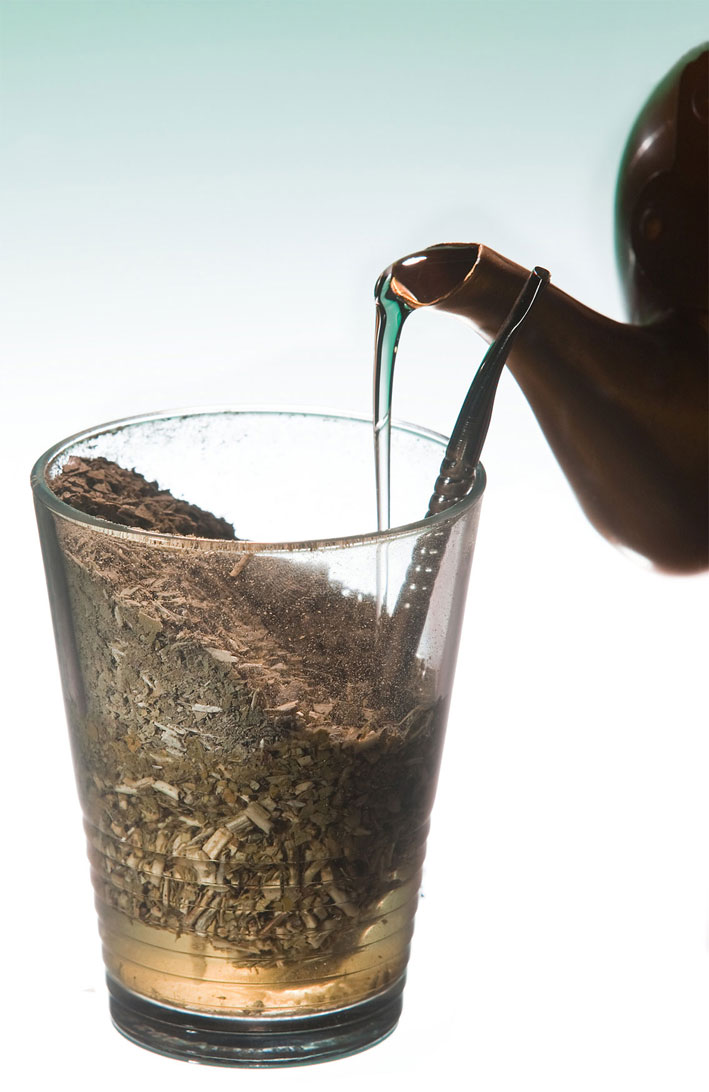 Teeklaasist (Eestiski levinud Vene päritolu stakanid on mateks väga head) juues on hea see, et näeb matet oma elu elamas – kuidas puru vähehaaval iga tõmmisega ülemistest kihtidest alla vajub.