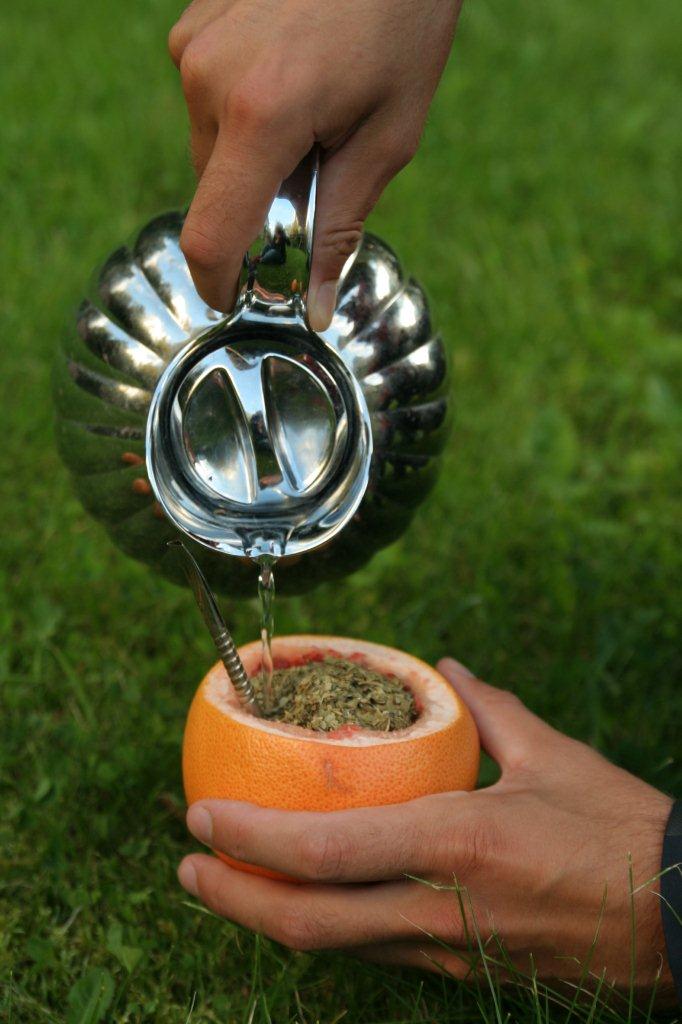 Greibisõpradele õpetus: Lõika greip pooleks nõnda, et üks pool on suurem kui teine. Siis uurista sisu välja ja söö ära. Suurema poole sisse jäta greipi veidi alles, et sellest hiljem matele maitset imbuks. Täida greibi suurem pool umbes pooles ulatuses matega, aseta bombilla otsapidi matesse ning vala peale tavapärast 70 kraadist vett. Vett vala nagu tavaliselgi puhul mööda bombillat. Kui tundub maiste liiga hapumõru, siis lisa veidi suhkrut või mett. Joo ära ja kalla uus vesi peale. Ja niimoodi nii kaua, kui mate maitset annab… nagu ikka matega joomisel. Võib proovida ka suurema sidruniga aga pigem on isegi suur sidrun selleks ikka liiga väike. Lihtsam on sidrunimahla lisada mate klaasi-tassi-kalebassi.