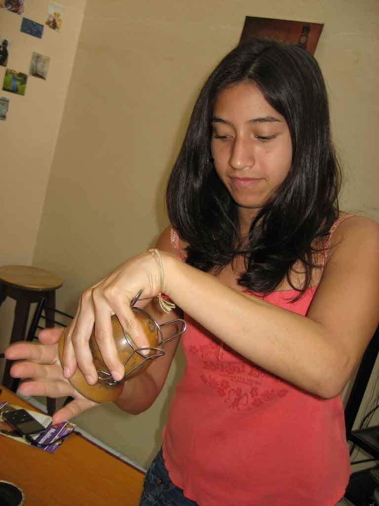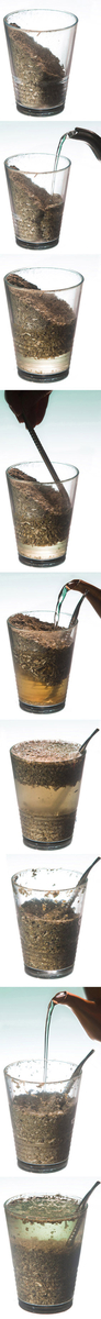 1 Pärast matepuru valamist anumasse kata see pealt käega kinni, keera see tagurpidi ja raputa kergelt kuni kümme korda – nii vajub tolm ja peenem lehepuru alla ning jämedamad lehed ja varred tõusevad üles (hiljem anumat aeglaselt tagasi keerates seega vastupidi – jämedam puru all ja tolmusem peal) ning seeläbi ei tungi pudi hiljem juues kõrre sisse.